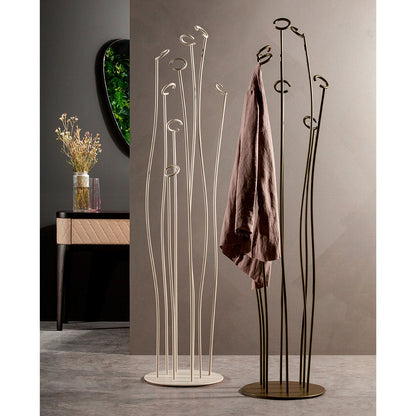 The Alga stands tall with an elegant silhouette, adorned with round coat hangers that resemble blossoming flowers swaying in the wind. Its design transforms any hallway, entryway, or foyer into a focal point of beauty and sophistication. Crafted with meticulous attention to detail, the Alga is not just a visual delight but also a testament to quality craftsmanship.