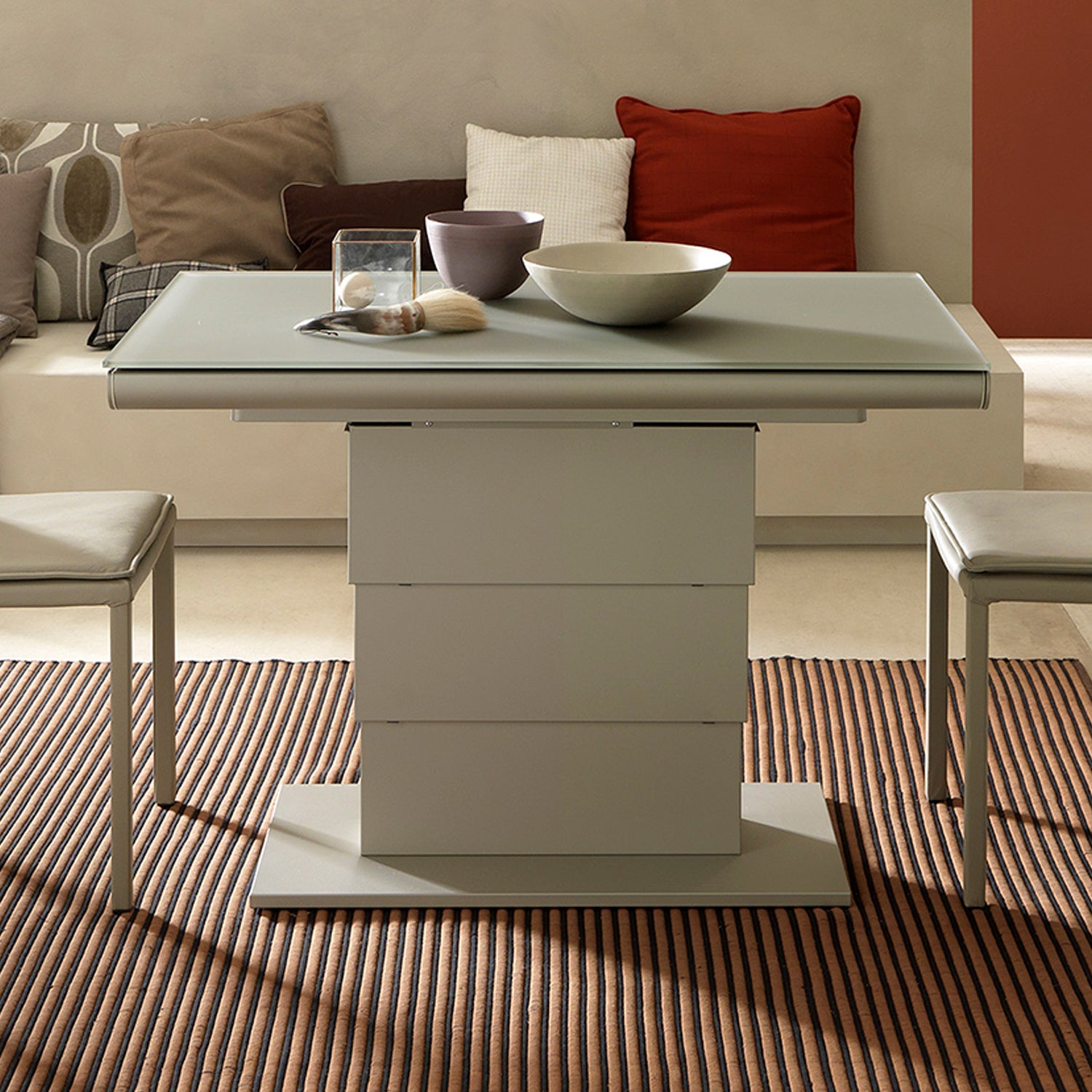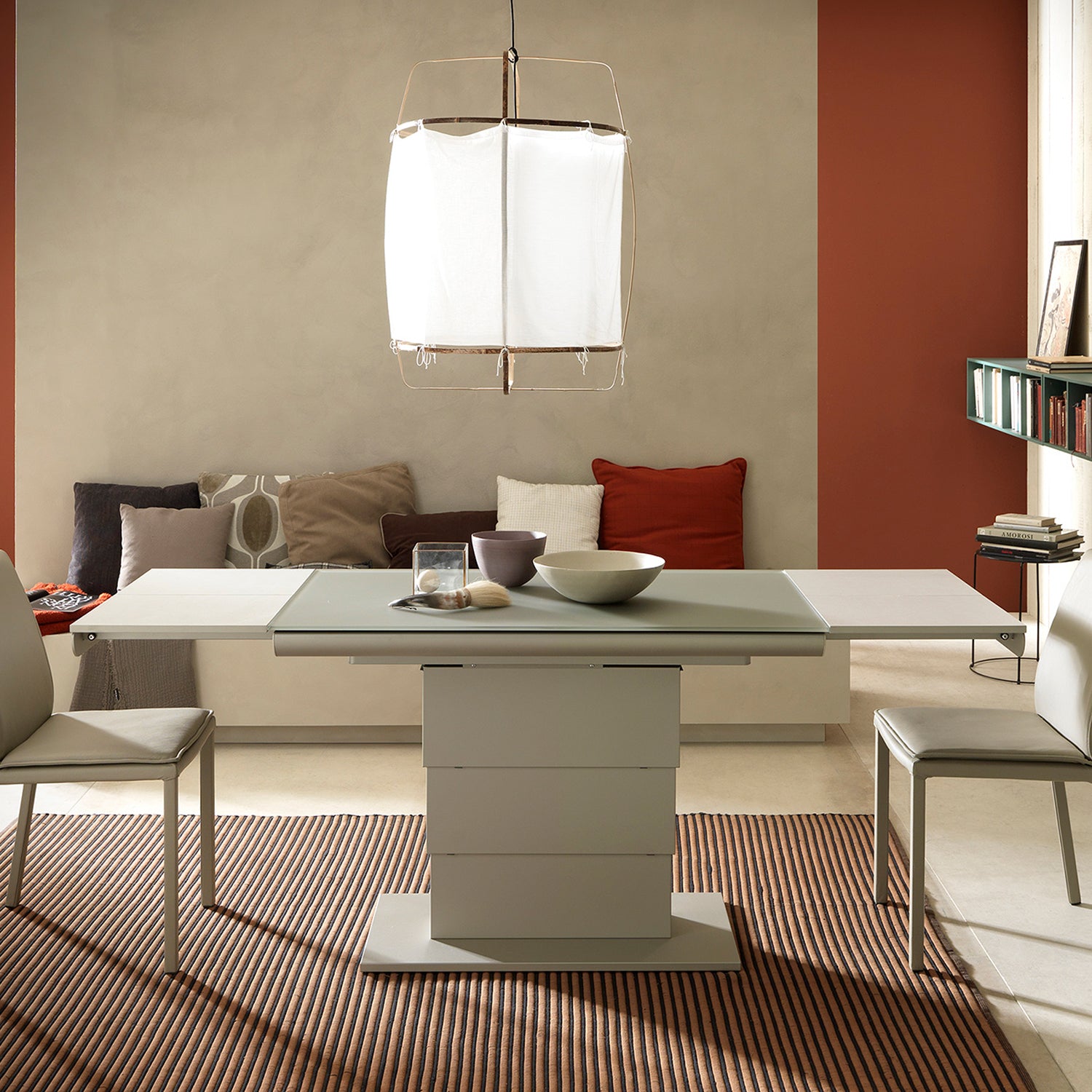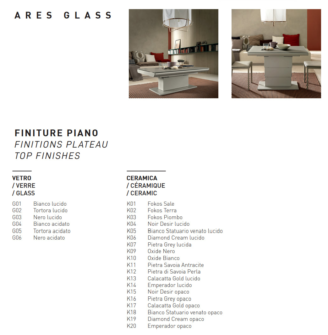 The top, available in glass or ceramic, coupled with side-folding extensions in melamine, further accentuates its adaptability. Not just limited to aesthetics, the table is designed for convenience with retractable swivel castors, ensuring seamless mobility and practicality in any space. A fusion of artistry and functionality, the Ares Glass Convertible Coffee Table is a beacon of contemporary design, inviting you to embrace its unique charm and versatility.