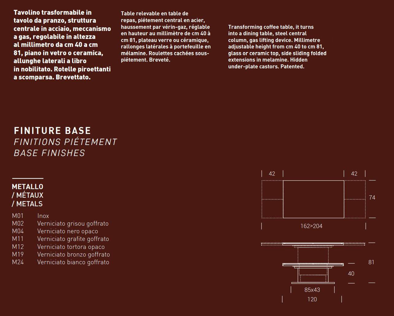 At its core, the Ares table boasts versatility like no other. With a central steel structure and an innovative gas mechanism, it transforms effortlessly from a stylish coffee table to a functional dining surface. The adjustable height, ranging from 40 cm to 81 cm, offers precision to the millimetre, catering to diverse preferences and needs.