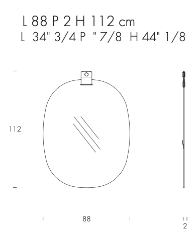 - Dimensions: L 64 H 88 W 2 cm or L 88 H 112 W 2 cm