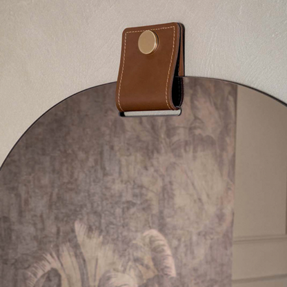 - Type: Shaped mirror with thick leather buckle and detail in gold finish