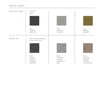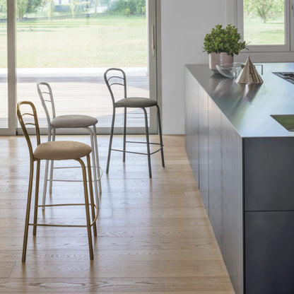The Bogota stool features a fixed, sturdy structure made from high-quality painted metal, ensuring durability and longevity. The metal frame not only provides robust support but also adds a touch of elegance to the overall design. The seat is upholstered and covered in Vintage Soft-Touch material, offering a luxurious feel and enhanced comfort. This unique upholstery gives the stool a chic, vintage look, adding a sophisticated touch to any room.