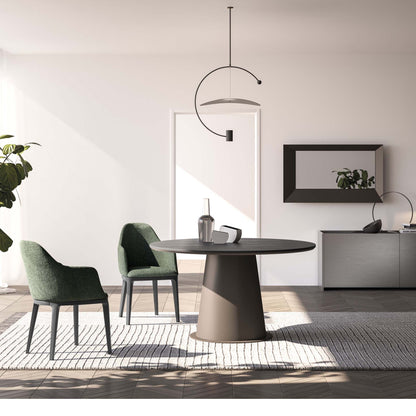 Pictured in a Carbone materic structure with Argento metal lacquer doors, Clio integrates effortlessly into dining rooms, living spaces, or hallways. Pair with Orme dining tables and chairs for a coordinated scheme with subtle metallic accents.