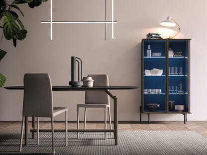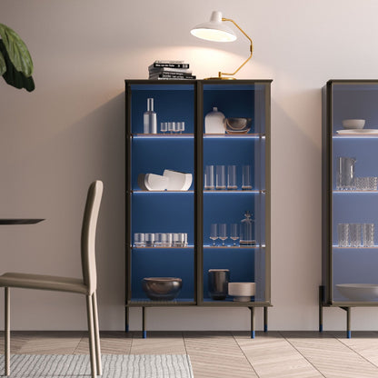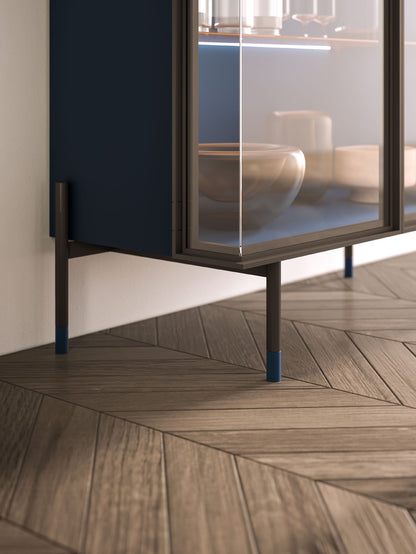 - Piega sideboard with glass doors and Blu matt lacquered details.