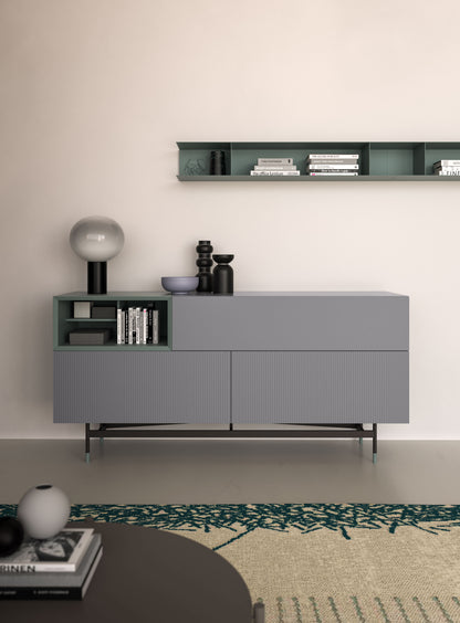 - Design details: Suspended Basalto lacquer bookcase with Cannete glass doors, Modulo sideboard, Strema element, Dalia base, Air filing cabinets