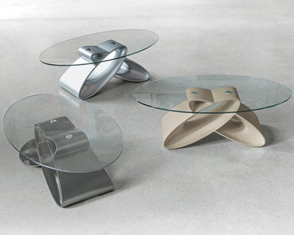 Introducing the Eclipse modern sculpted coffee table by Target Point, a stunning centrepiece that seamlessly blends form and function. Crafted with precision, its lacquered polyurethane legs exude sophistication while providing sturdy support. The sleek oval transparent tempered glass top not only adds a touch of elegance but also offers a practical surface for your everyday essentials.