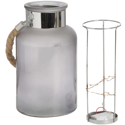 Introducing our exquisite Frosted Grey Glass Lanterns, where sophistication meets charm. Crafted with meticulous attention to detail, these lanterns are the epitome of refined taste and versatile elegance. Each lantern boasts a distinctive frosted grey glass exterior that exudes an understated allure, lending an air of sophistication to any space. The meticulously designed rope-detailed handle adds a touch of rustic appeal, seamlessly blending modernity with a hint of timeless craftsmanship.