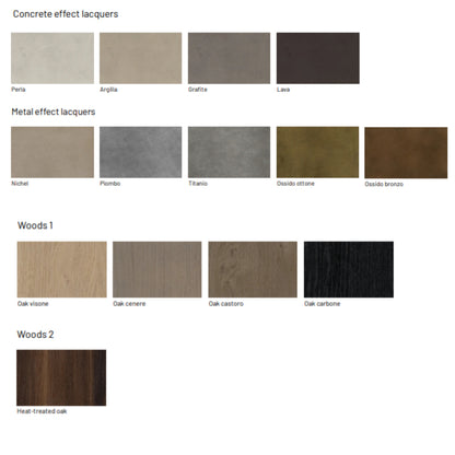- Internal drawers available in various widths, matching the sizes of wardrobe units. These are stackable to create endless variations and come with fronts in wood or grey transparent glass framed finish. - Vertical built-in lamp with a movement reading sensor.