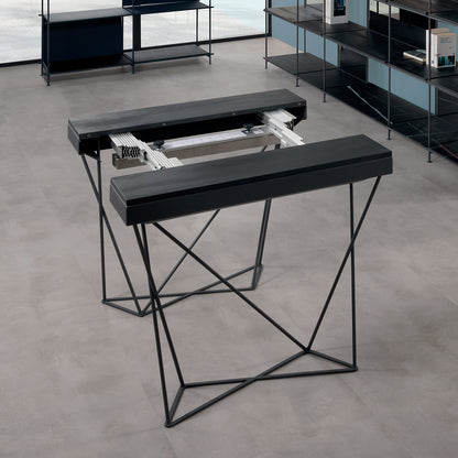 Its transformative mechanism offers a practical solution for furnishing your entrance area, serving as a stylish console when closed. However, when the need arises, the console effortlessly opens to reveal a spacious table, catering to a variety of purposes. This dual functionality, coupled with its contemporary design, ensures that the Excel table console seamlessly integrates into your living space, providing both style and practicality.