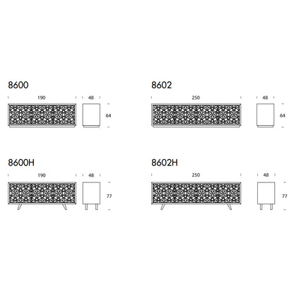 - Dimensions (8602H): L 250 H 77 W 48 cm