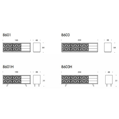 - Dimensions (8603): L 250 H 64 W 48 cm