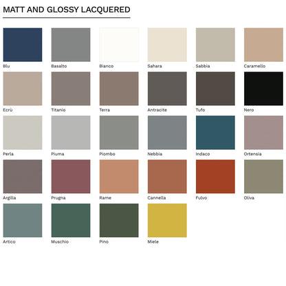 - Finishes available: Decor Plus, Opaco Plus, Wardrobe Interior, Decor Rigato, Marbles, Veneers, Leather, Matte & Gloss Lacquer, Metallic Lacquer, Brushed Metallic, Glass, Mirrors, Silk-screened Glass, Textured Matte Colours