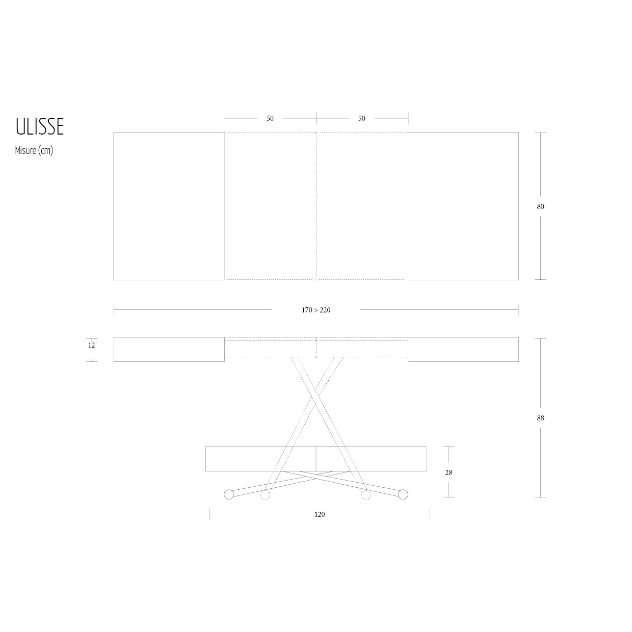 The ingenuity lies within its interior mechanism, delivering an exceptional performance that remains discreetly concealed, ensuring a flawless experience in every configuration. Ulisse embodies a contemporary myth, seamlessly blending perfectly aligned joints with refined aesthetics, setting a new standard for versatile furniture. This convertible masterpiece boasts a metal base and a gas mechanism that allows precise height adjustment from 28 to 88 cm, catering to your specific needs with millimetre precision.