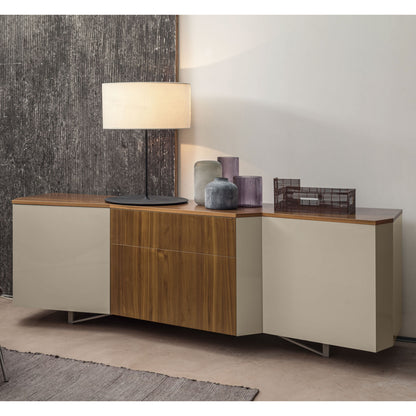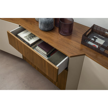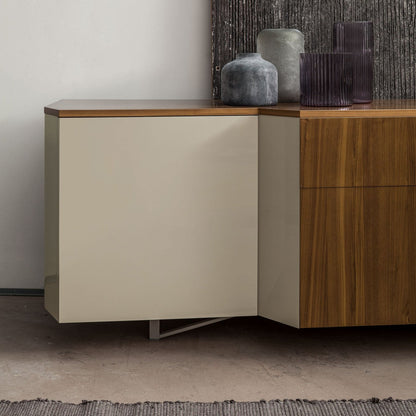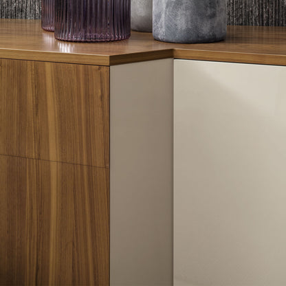 - Body and Doors: Lacquered Sand L70 Top and Drawers: Veneered Wood Canaletto Walnut W10