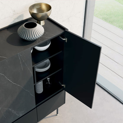 Introducing The Wrap, an expansive storage cabinet meticulously crafted by Dall'Anese. This sophisticated piece features a structural marvel of 2 doors and 2 drawers, embodying both functionality and style. Elevate your living space with its exquisite design, where one door boasts a ceramic porcelain finish, adding a touch of finesse and creating a subtle yet captivating contrast within the unit.