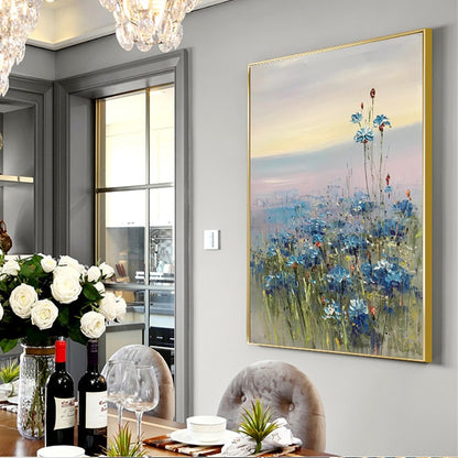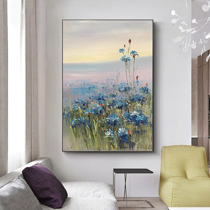 Abstract blue flower oil hand painted canvas