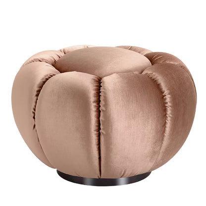 The design of the pouf reflects the elegance and beauty of a flower bud, showcasing a stunning silhouette that sits atop a wooden frame. The use of glamorous pink velvet upholstery enhances its aesthetic appeal, creating a luxurious and visually striking piece of furniture. Supported by a luminous laminate base, the Arke Pouf not only embodies artistic design but also incorporates quality craftsmanship.