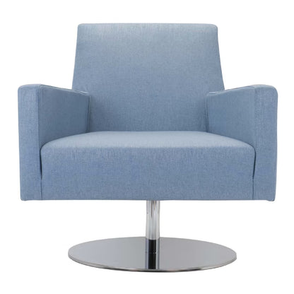 The light blue Dacron fabric upholstery not only exudes elegance but also enhances the chair's adaptability to various interior styles. Whether placed in a modern living room, a stylish office, or a cosy reading nook, this swivel armchair effortlessly combines ergonomic comfort and tailored sophistication, making it a true centrepiece that elevates both form and function in any space.