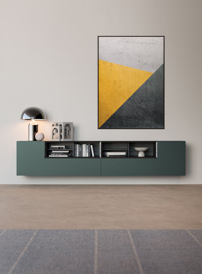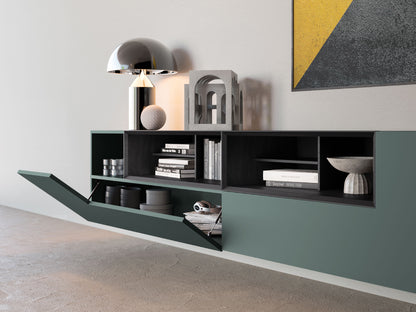 - Suspended modular wall unit with a refined Italian aesthetic.