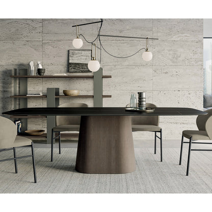 The central wooden base of the Koniko table is a testament to Zorzenoni's commitment to quality and craftsmanship. It comes in an array of finishes, from natural wood veneers that highlight the inherent beauty of the material to a selection of lacquered finishes in matt, cement, or metallic options. This versatility ensures that the table can seamlessly integrate into a wide range of decor themes, whether you prefer the warmth of wood or the sleek look of modern finishes. The conical structure of the base adds a statuesque quality to the table, enhancing its presence in any room.