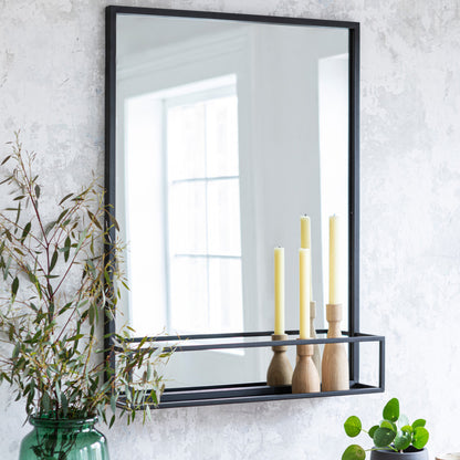 Sapperton Rectangular Mirror with Shelf in Black by Garden Trading - Iron