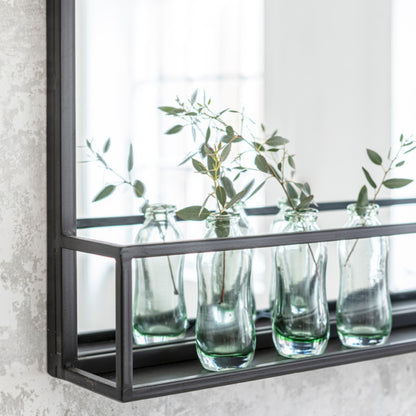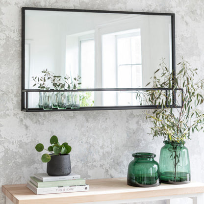 Sapperton Wide Mirror with Shelf in Black by Garden Trading - Iron