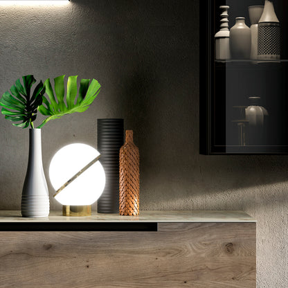 The stylish top in Calacatta Oro Laminam ceramic is also available in different finishes: Noir Desir, Calacatta Oro, Grey Orobico and many more that you can view in the catalogue Materials and Finishes. Laminam is a revolutionary, 100% made in Italy, large-size, minimum-thickness ceramic slab created using cutting-edge technologies. It can be positioned on top of the cabinets for a maximum length of 2880mm of pure porcelain stoneware compacted into a thickness of just 5.5 mm.