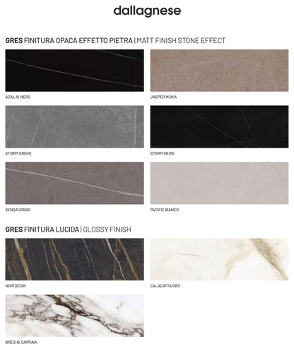 - Finishes: Metal Brown, Oak Ash, Calacatta Oro Polished/Glossy and Matt Lacquer Dark Grey Y18232