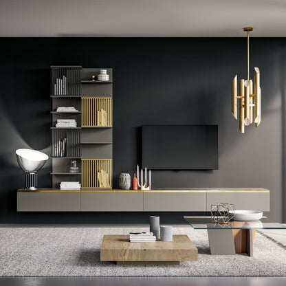 The metal grill can have a burnished, brass, titanium or white finish. Functional elements in different sizes that suit the new habits of our everyday lives: a contemporary, sophisticated, design concept that offers infinite solutions, from the most simple wall systems to the most innovative layouts. We have an extensive range of TV Units, Wall Units, Bookcases and Sideboards, all our cabinets are available with lift-up, pull or drawer doors, and all are available with a soft close mechanism.