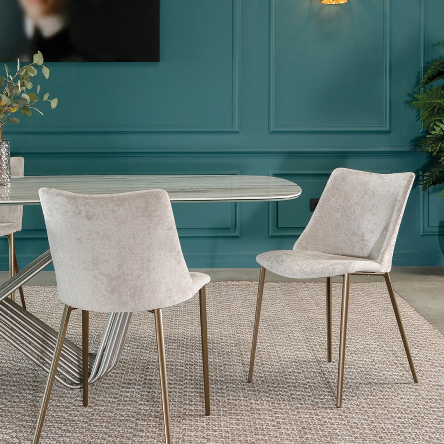 Featuring a choice of either a sleek metal base or a warm wooden base, the Agata chairs and armchairs cater to different stylistic preferences and décor themes. The metal base provides a contemporary, minimalist look, while the wooden option brings a touch of natural warmth and traditional charm. Both bases are designed to offer stability and durability, ensuring that these pieces not only look stunning but also stand the test of time. The chairs' lighter construction makes them easy to move and arrange, enhancing their versatility in various settings.