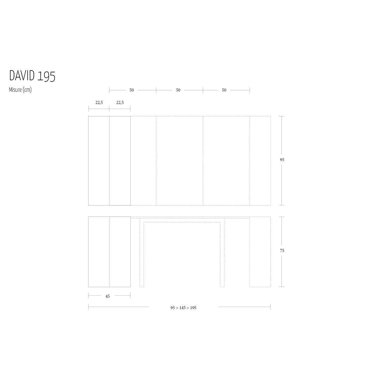 - David 195: L 45-195 H 75 W 95 cm