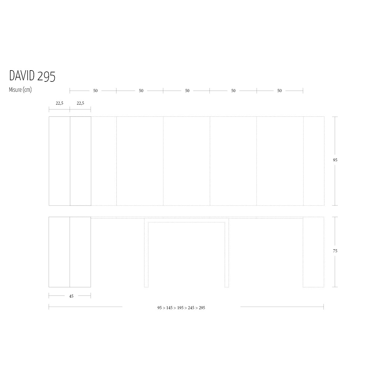 - David 295: L 45-295 H 75 W 95 cm