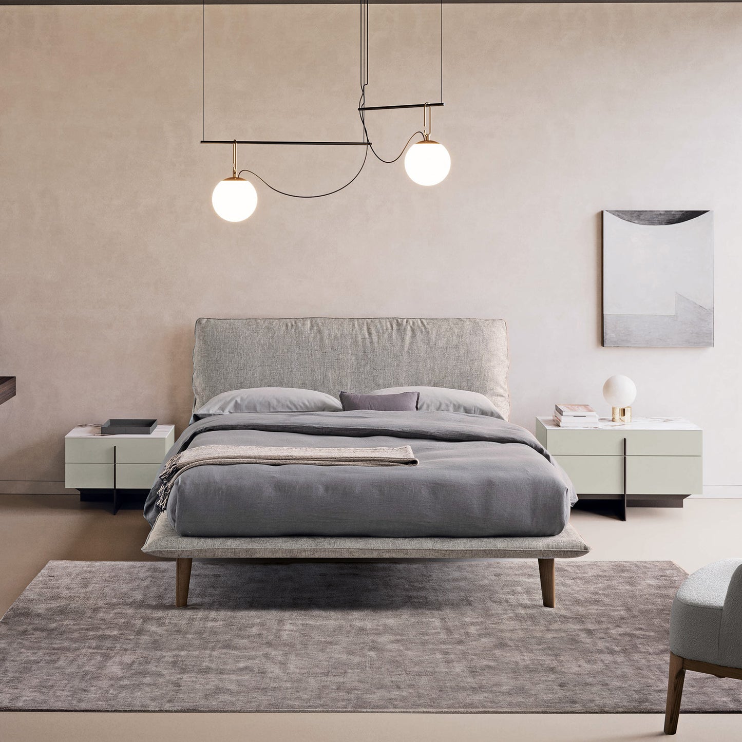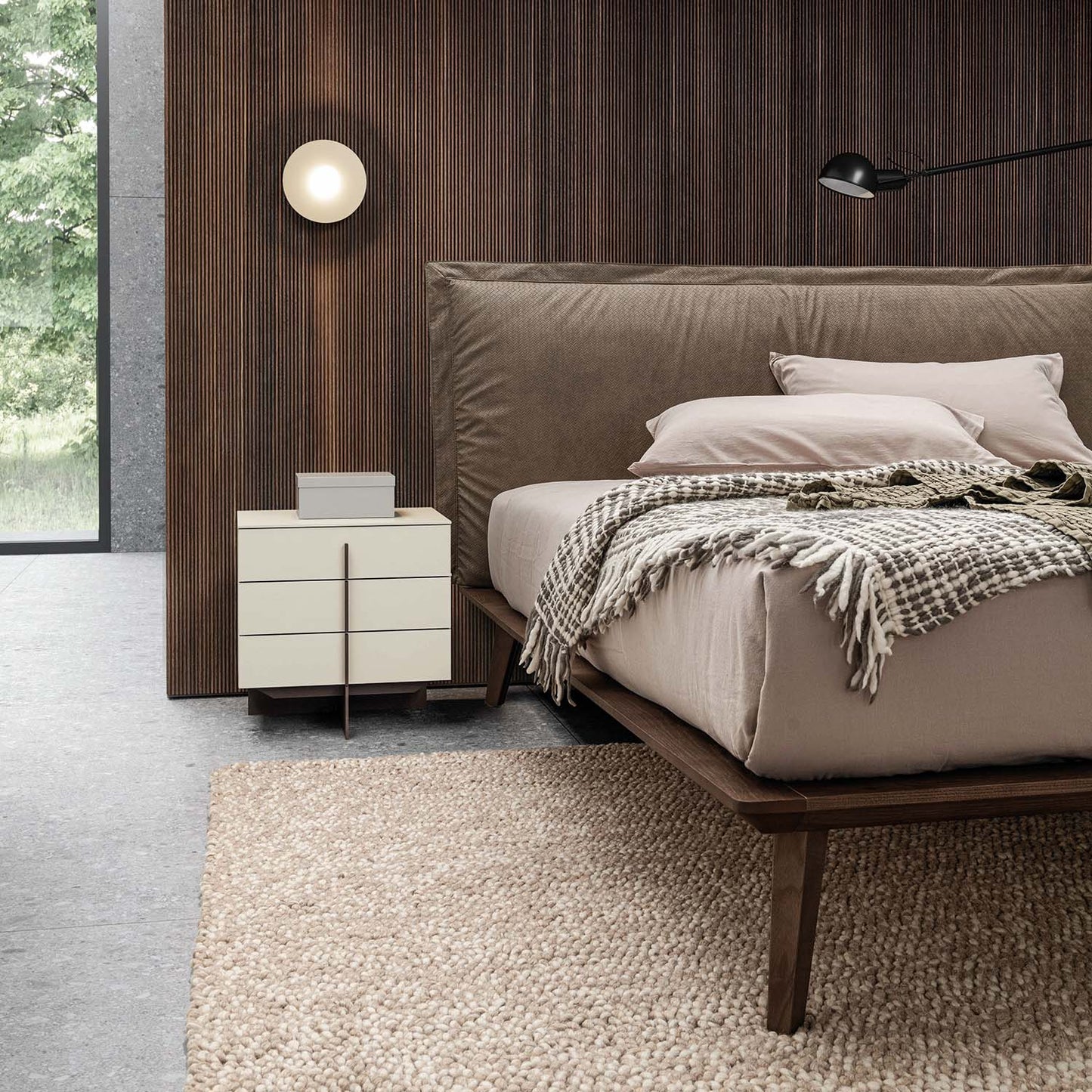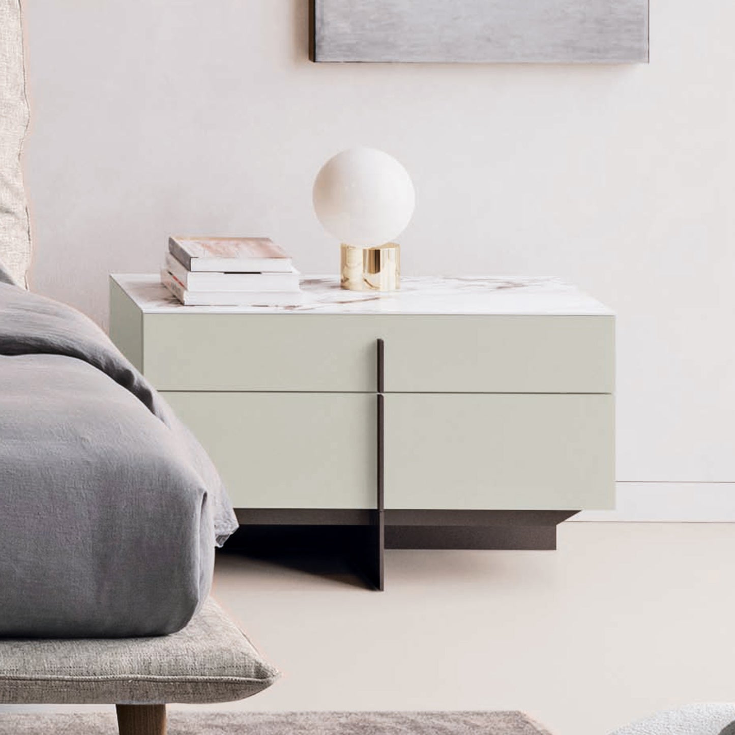 Katana collection by Dall'Agnese. A versatile and modern group of bedroom furniture for your contemporary home. The bedside table is available with 2 or 3 drawers in length 45, 60 or 90cm and height 45, 52.5 and 60cm. The metal structure that looks like a Japanese Katana sword runs up the entire unit and serves as a practical handle. Top is available in different ceramic stoneware finishes or in wood.