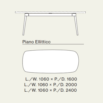 An elliptical dining table crafted in Italy with a refined, timeless design. -