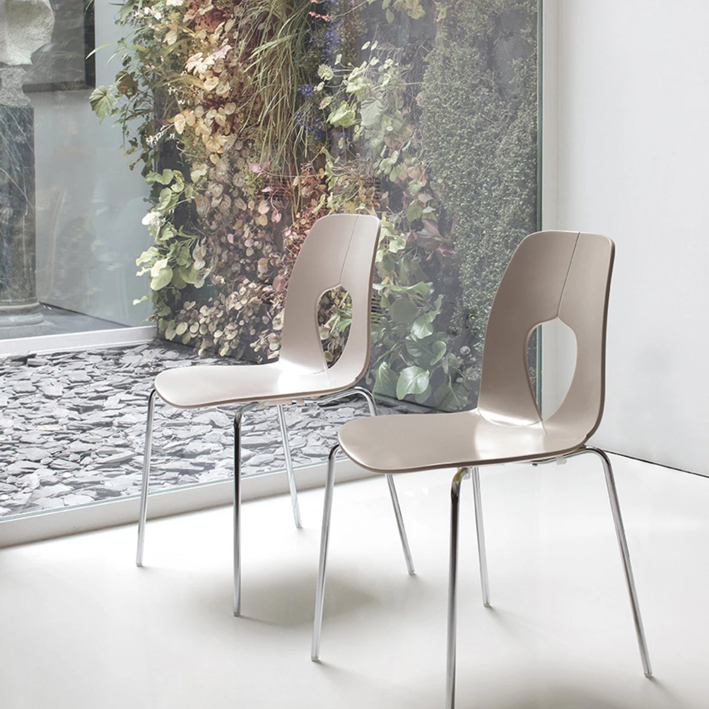 Complementing the durable seat is a meticulously crafted metal structure, which comes in both lacquered and chromed finishes. This versatile base not only enhances the chair's aesthetic appeal but also adds to its sturdiness and stability. The coordination between the metal frame and the chair's upholstery creates a cohesive and stylish look that suits a variety of interior design themes. Whether you opt for a vibrant, bold colour or a subtle, neutral tone, the Hole chair seamlessly integrates into any setting.