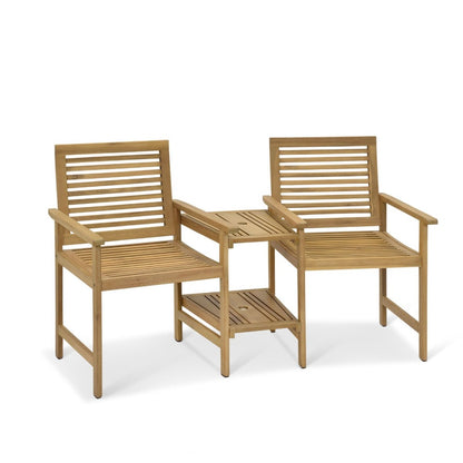 Introducing the enchanting Titchberry Loveseat, a delightful addition that adds a touch of romance to your summer moments in the garden. Crafted from solid acacia, this loveseat exudes timeless elegance, whether placed on a patio or nestled in a secluded corner. It is the ideal setting for sharing quiet moments and savouring a chilled bottle of wine together. The Titchberry Loveseat features a built-in table strategically positioned between the two seats, providing a convenient surface for placing drinks.