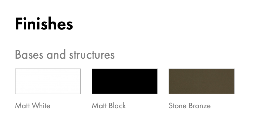 - Structure: Matt White 0001, Matt Black 0002 and Stone Bronze 0083