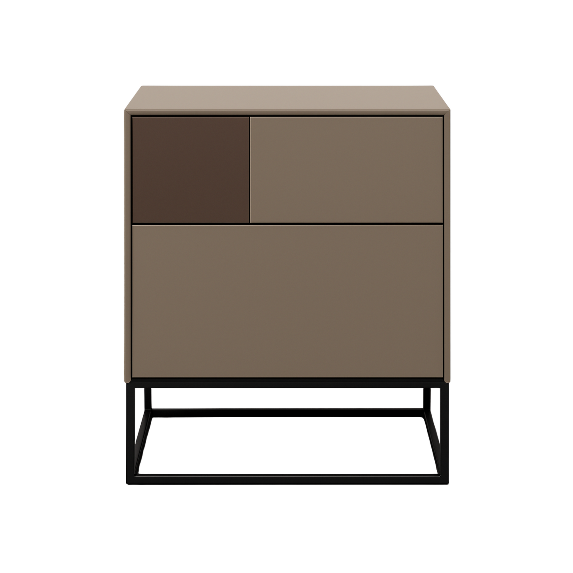 The Klee Bedside Table – 2 Drawers (Metal Base) by Orme Design pairs a sleek, handleless façade with an elegant raised frame. Push-pull opening keeps lines ultra-clean, while concealed soft-close runners deliver smooth, quiet operation. The A/B front layout can be specified tone-on-tone or in mixed finishes for a bespoke look.