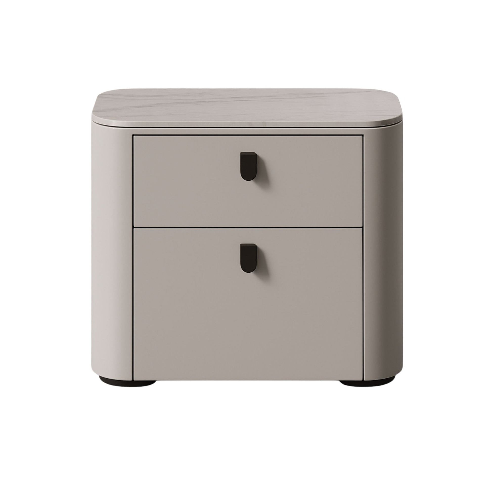 2-Drawer Bedside with Rounded SidesA compact, practical nightstand that pairs generous storage with a soft silhouette. Choose durable materico melamine for everyday use or upgrade to premium matt, gloss, or metallic lacquers for a tailored look.