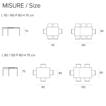 - Dimensions: L 85/130 H 75 W 80 cm or L 115/160 H 75 W 80 cm