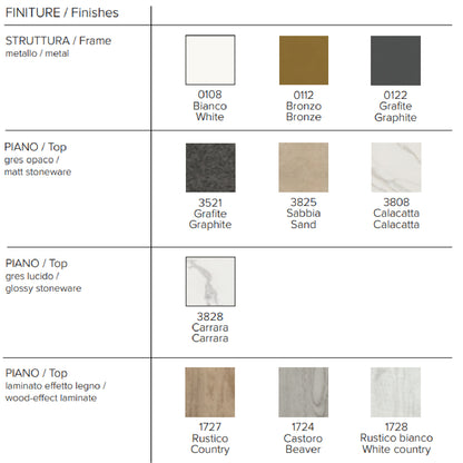 Structure Finish: Metal legs The metal products are generally made of steel. The steel is then finished by powder coating. Excellent quality level in terms of aesthetics and resistance over time.