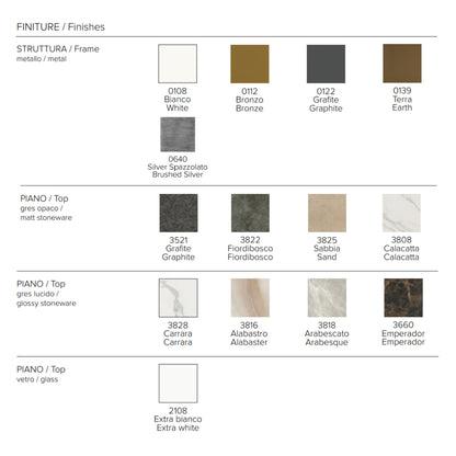- Structure: White, Bronze, Graphite, Brushed Silver, and Earth