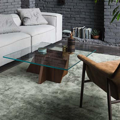 The exquisite glass top of the table, paired with a meticulously designed staggered wooden base, reflects the true essence of sophistication. The varying sizes of the wooden boards contribute to a distinctive and modern aesthetic, making the 'Stripe' coffee table a focal point in any living room.