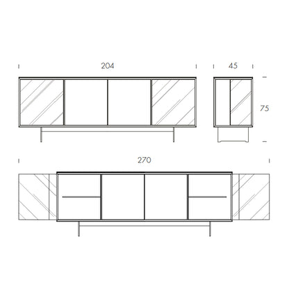 The unique feature of lateral openings, concealed within the sides of the sideboard, imparts a distinctive identity to its exclusive design, elevating it beyond mere functionality to a statement of sophisticated style and bespoke craftsmanship. The Aira sideboard's porcelain stoneware doors not only contribute to its aesthetic appeal but also attest to the meticulous attention to detail in its construction. The internal leads further enhance its functionality, ensuring that the sideboard not only serves as a visual delight but also as a practical storage solution.