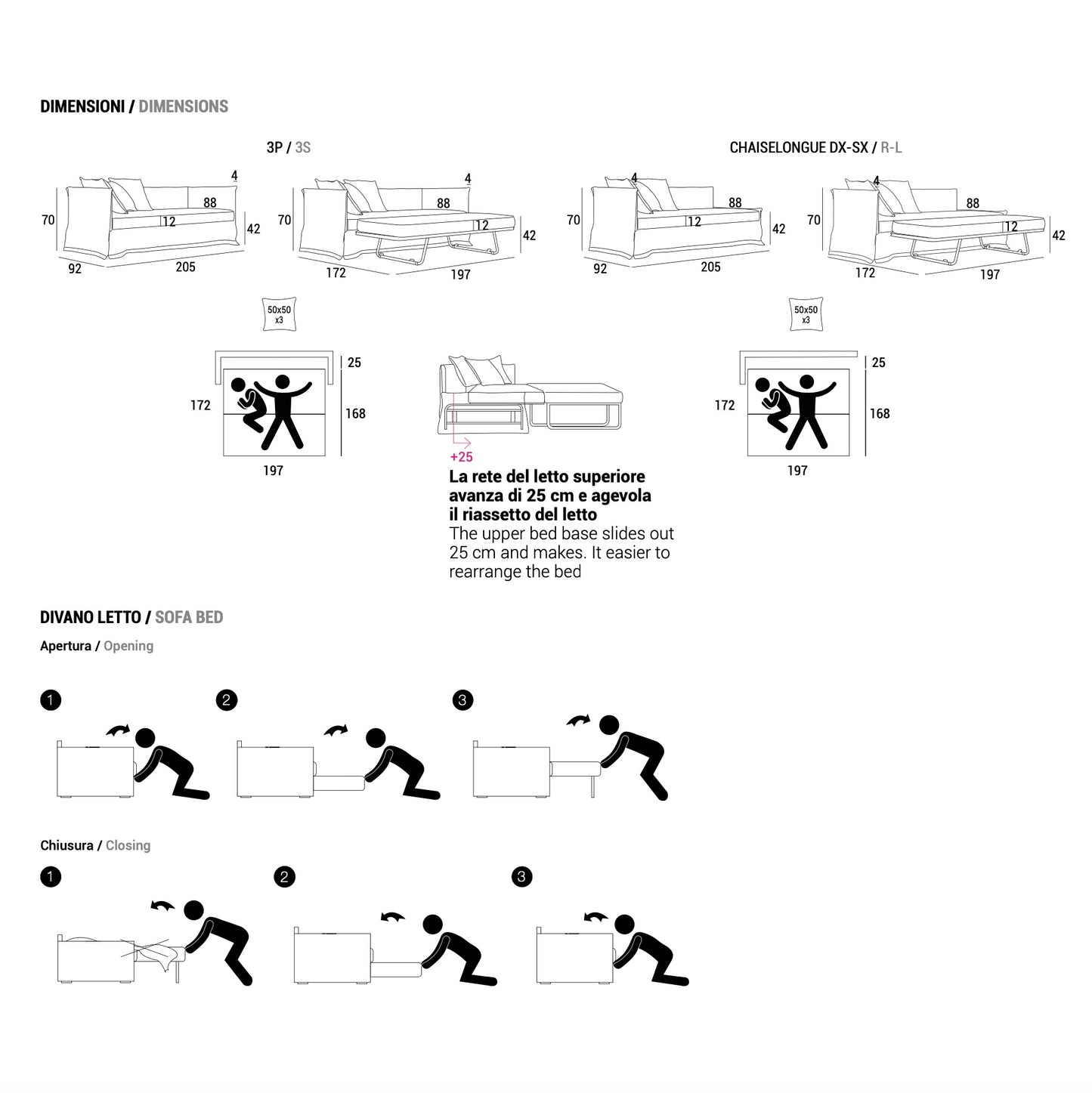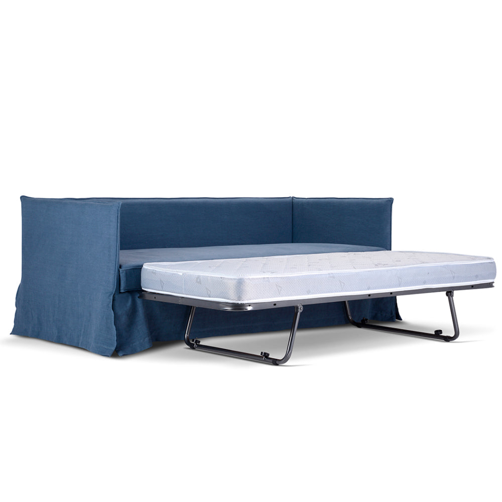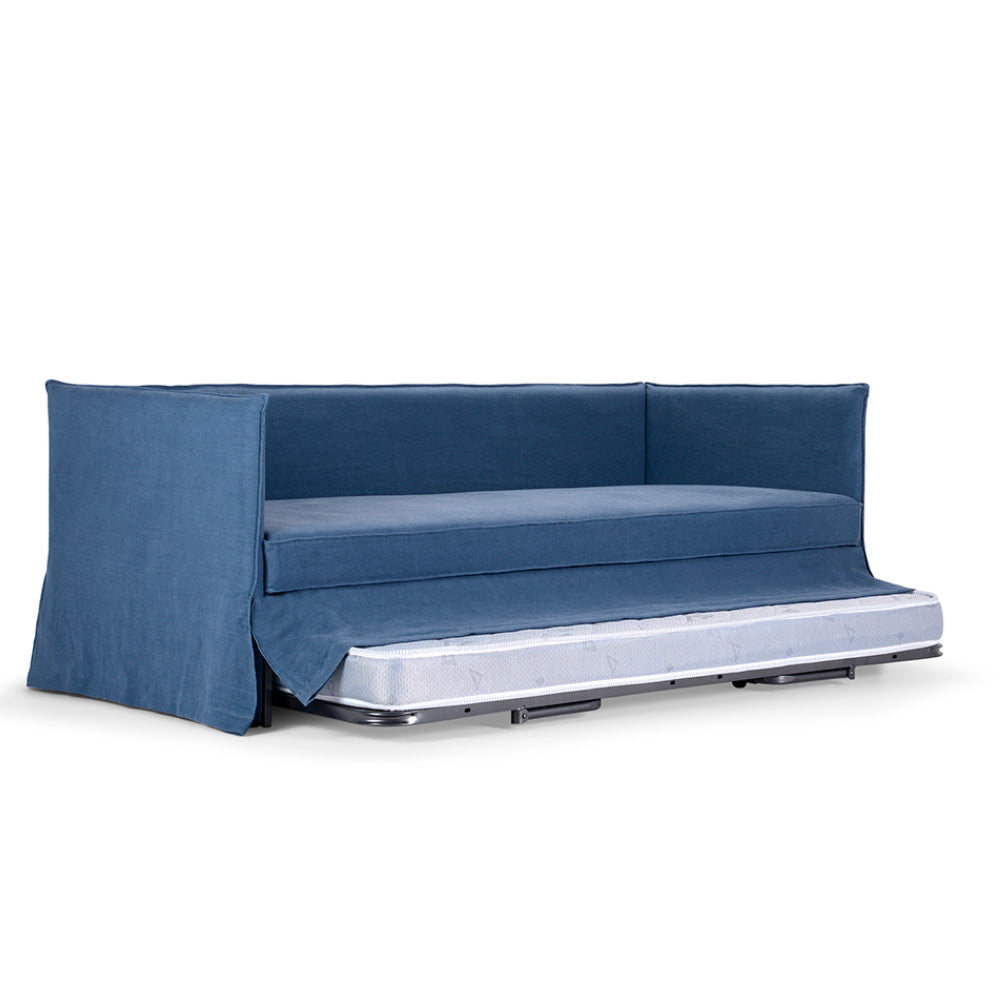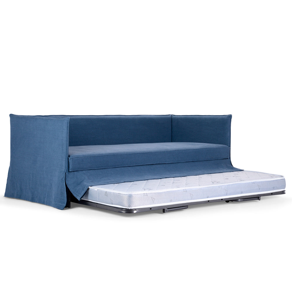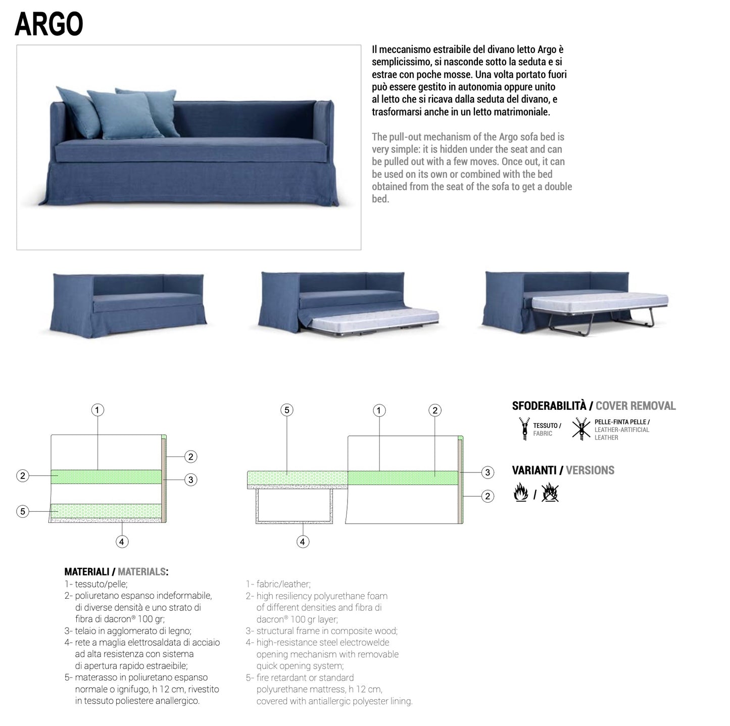 The innovative sofa-bed pull-out mechanism is a testament to Argo's user-friendly design. Hidden discreetly under the seating surface, the mechanism can be effortlessly activated with just a couple of moves. In a matter of moments, the hidden bed is revealed, ready to provide a comfortable sleeping solution. Whether used as a single bed, paired with the accompanying single bed formed from the sofa seat, or combined for a spacious double bed, Argo adapts to diverse needs with ease.