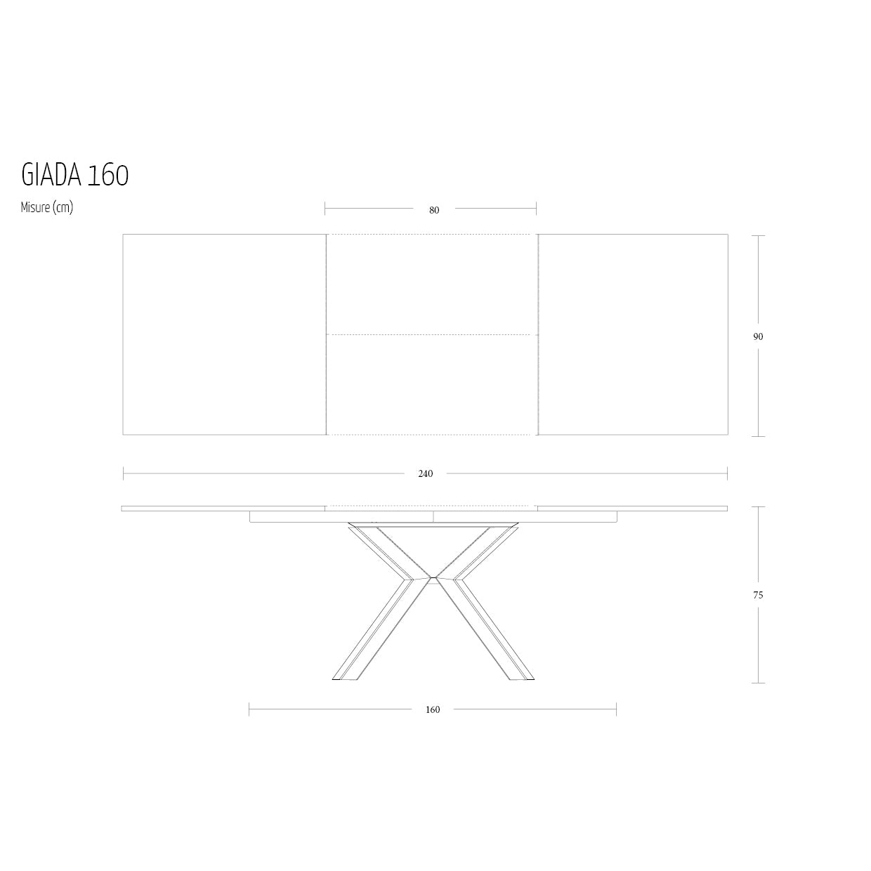 - Giada 160: L 160-240 H 75 W 90 cm