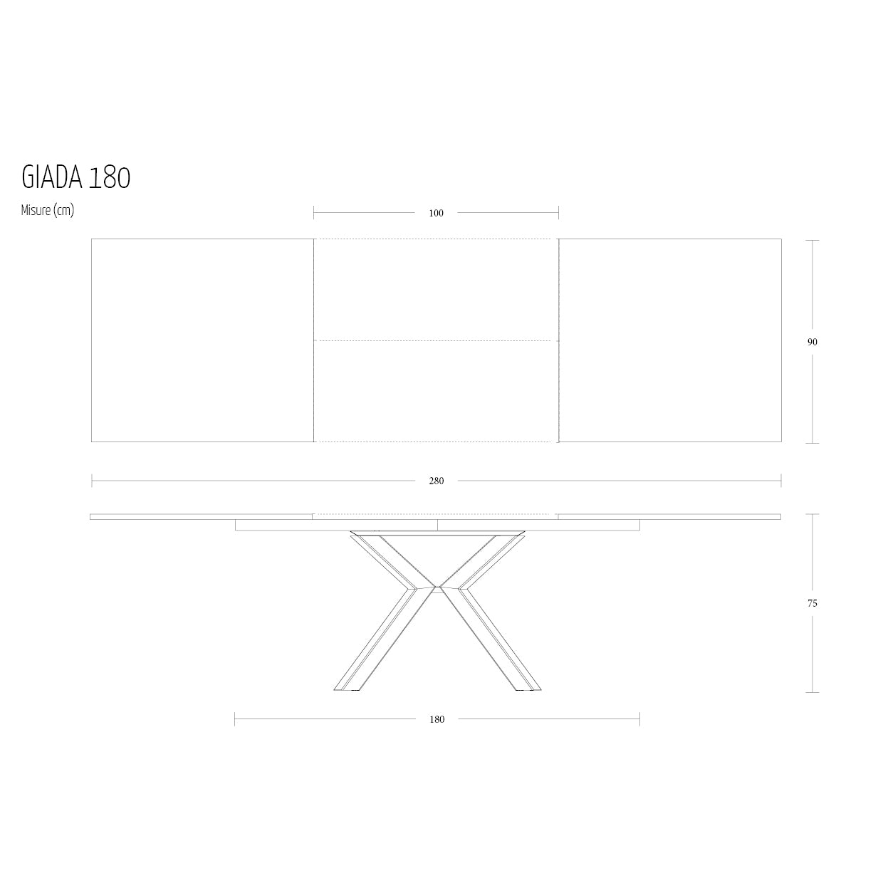 - Giada 180: L 180-280 H 75 W 90 cm