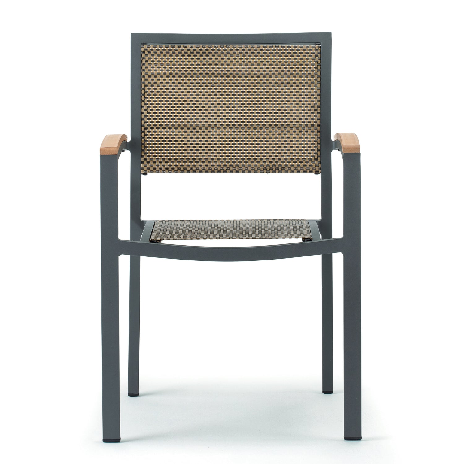 - Stackable armchair, aluminium frame covered with textylene and technowood, thickness mm 1,5
