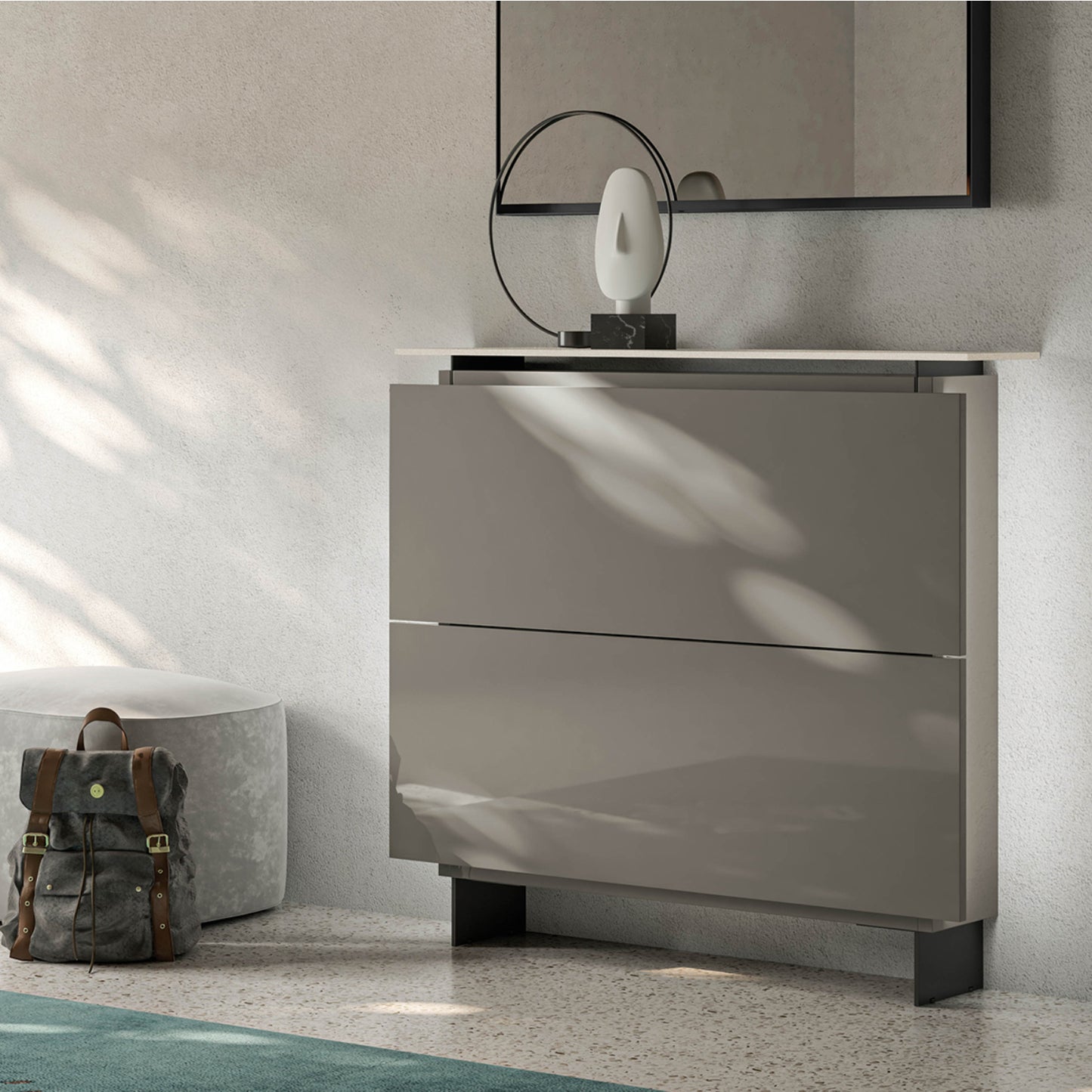 The Hosoi Floor Standing shoe storage by Birex effortlessly blends functionality with sophisticated design. Its minimalist aesthetic is accentuated by a ceramic marble top, available in a variety of colours, adding a touch of luxury to your space. The lacquered door, featuring an integrated side handle, not only contributes to the unit's elegant appearance but also ensures easy access to your shoe collection.