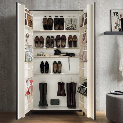 The Linear 2 mirrored door shoe storage unit by Birex epitomises modern minimalism, offering a sleek and uncluttered design that seamlessly integrates into any living space. This space-saving marvel is not merely a piece of furniture but a patented solution designed for efficiency. This storage unit offers up to 40 pairs of shoes, as well as boots, with its ingenious construction. It provides comprehensive, organised storage with ample internal space and additional room behind the mirrored doors.
